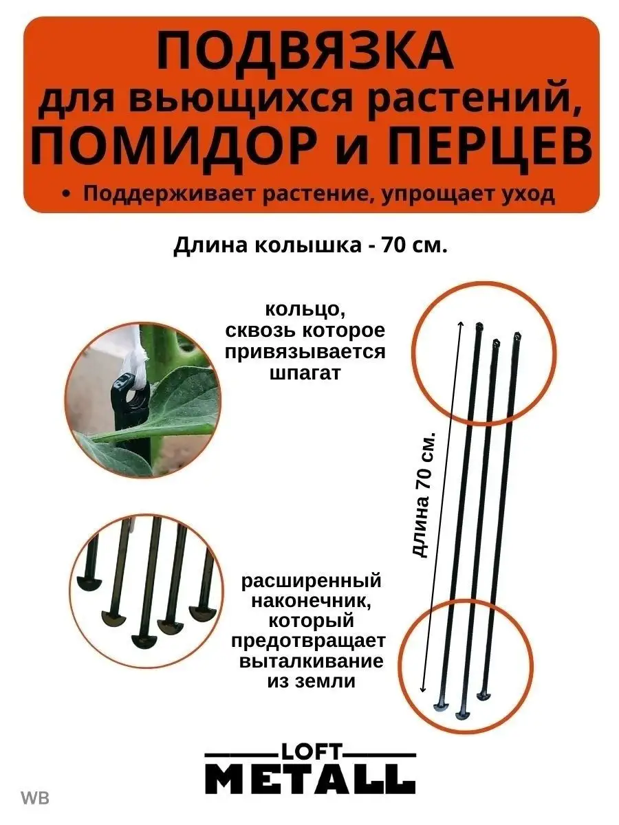 Колышки садовые металлические для подвязки растений и кустов длиной 50 см и 70 см. В комплекте 5,10,15 и 20 штук. Опоры для растений сделаны из металлической трубы 10х10 мм, порошковое атмосфероустойчивое покрытие предотвращает от царапин и ржавчины. На верхнем конце колышка отверстие для удобного крепления веревки и шпагата, на нижнем конце опоры расширенный наконечник, который помогает легко устанавливать колышек в любой земле и препятствует его выталкиванию из неё. Набор садовых колышков можно использовать как кустодержатель, для подвязывания томатов, огурцов, декоративных и вьющихся растений или как альтернативная шпалерная сетка. Колышки создают красивый, эстетический вид Вашим растениям, помогают им расти и предотвращают от повреждений. Собственное производство. Выбор дачников и садоводов.Набор для подвязывания растений, подвязка для вьющихся растений, помидор, огурцов, подвязка помидор, колышки для растений, опора для цветов, грядки, товары для сада и огорода, подвязки для садовых растений, подвязка для растений, тапенер, устройство для подвязки, кустодержатель, колышки металлические, колышки для подвязки, для дачных грядок, подвязка в парник, теплица, растения в теплице, садовый инвентарь для огорода, сезон весна – лето, дачный сезон.