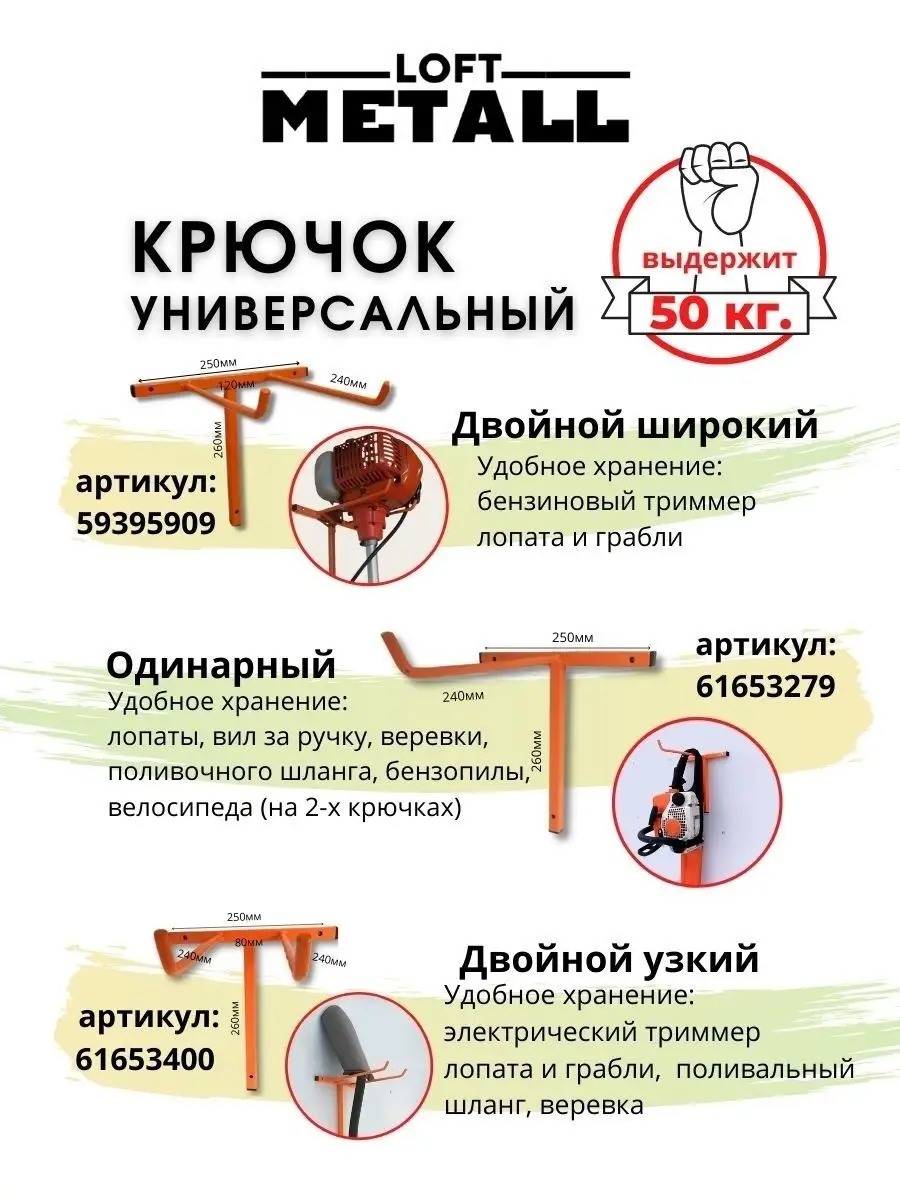 Кронштейн для автомобильных колес - настенная конструкция позволяет компактно и правильно хранить шины и избежать их повреждения и деформации. Модель хранения шин - сварная конструкция из профильной трубы, покрыта атмосферной порошковой краской оранжевого цвета, что обеспечивает высокую прочность и эстетичный внешний вид крючка. Монтируйте кронштейн для хранения шин на крепкую стену, способную выдержать вес колес. Полка для хранения шин вешается на 4 точки крепления (саморезы входят в комплект) и выдерживает вес 75 кг. Мы продаем продукцию собственного производства! Наши крючки для хранения в позволяют организовать место для безопасного хранения колес: они не будут контактировать с влагой и грязью и деформироваться; Можно закрепить высоко под потолком, что сэкономит тесное пространство гаража. Материал каркаса: сварная конструкция из профильной трубы. Собственное производство! Обратите внимание: автомобильные шины должны храниться отдельно от дисков. В КОМПЛЕКТЕ 1 кронштейн!