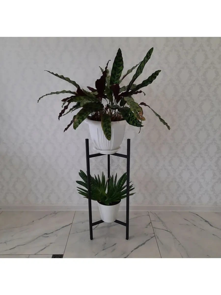 Подставка под цветы напольная - неразборная сварная металлическая конструкция на трех ножках. Наши подставки для цветов и комнатных растений на пол станут незаменимыми помощниками в создании уюта в вашем доме. Вертикальная напольная опора в стиле лофт - это интересное дизайнерское решение для дома в гостиной, спальне, прихожей, на балконе, а так же на даче - для уличного садового цветника. Цветочная этажерка не займет много места, на ней можно расположить кашпо или горшок с растением. Подставка для цветов напольная и на подоконник изготовлена из металла, покрашена порошковой краской, торцы закрыты пластиковыми заглушками для защиты поверхностей пола от царапин и других повреждений, сделано на производстве в России. Подставка подходит для средних и крупных кашпо, горшков с тяжелыми растениями. Подходит под разные типы горшков диаметром от 15 до 24 см. Высота - 70 см, глубина посадки кашпо - 10 см. Подставка под цветы напольная металлическая имеет два яруса. На подставке для цветочных горошков можно разместить два растения.