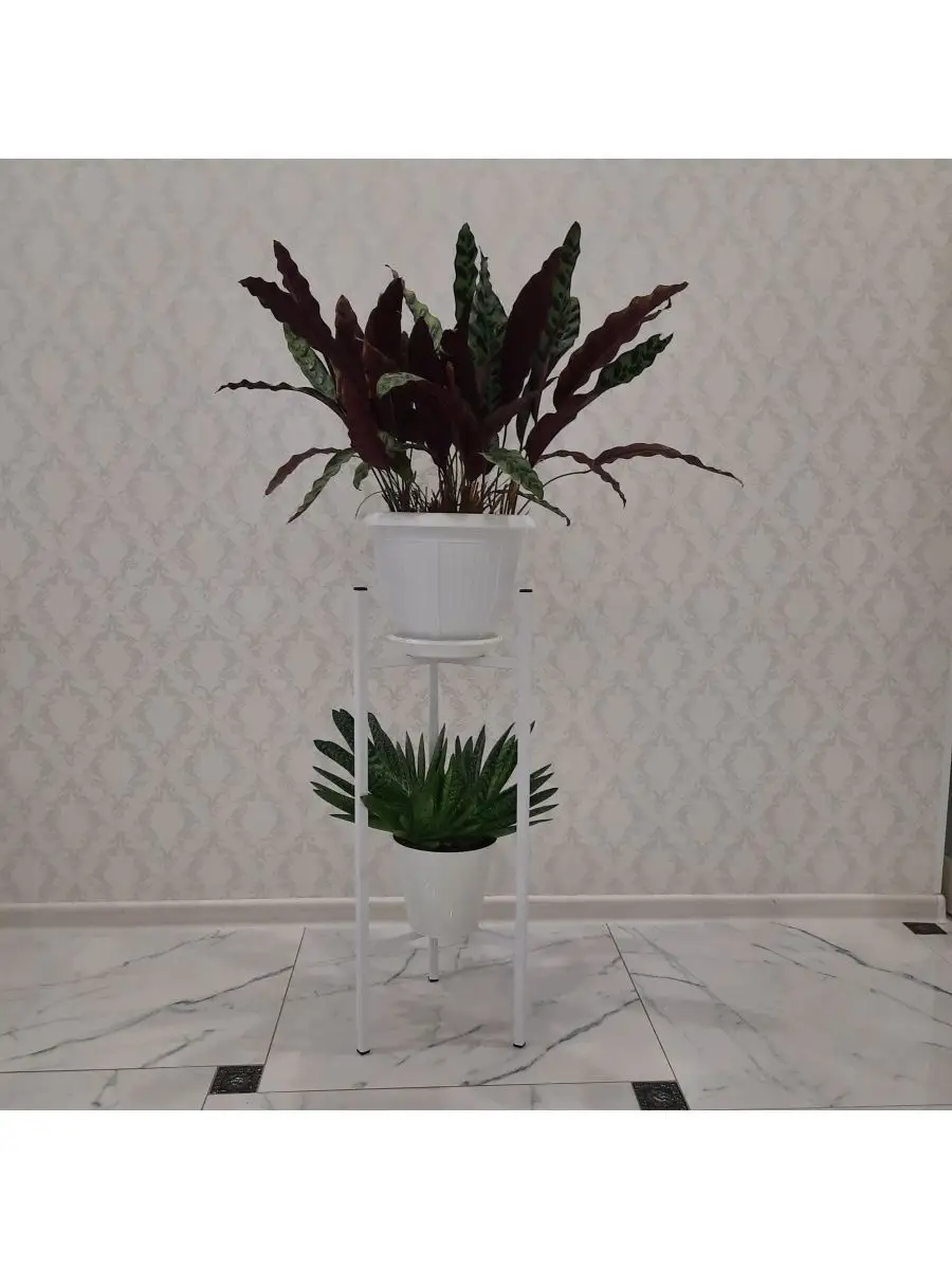 Подставка под цветы напольная - неразборная сварная металлическая конструкция на трех ножках. Наши подставки для цветов и комнатных растений на пол станут незаменимыми помощниками в создании уюта в вашем доме. Вертикальная напольная опора в стиле лофт - это интересное дизайнерское решение для дома в гостиной, спальне, прихожей, на балконе, а так же на даче - для уличного садового цветника. Цветочная этажерка не займет много места, на ней можно расположить кашпо или горшок с растением. Подставка для цветов напольная и на подоконник изготовлена из металла, покрашена порошковой краской, торцы закрыты пластиковыми заглушками для защиты поверхностей пола от царапин и других повреждений, сделано на производстве в России. Подставка подходит для средних и крупных кашпо, горшков с тяжелыми растениями. Подходит под разные типы горшков диаметром от 15 до 24 см. Высота - 70 см, глубина посадки кашпо - 10 см. Подставка под цветы напольная металлическая имеет два яруса. На подставке для цветочных горошков можно разместить два растения.