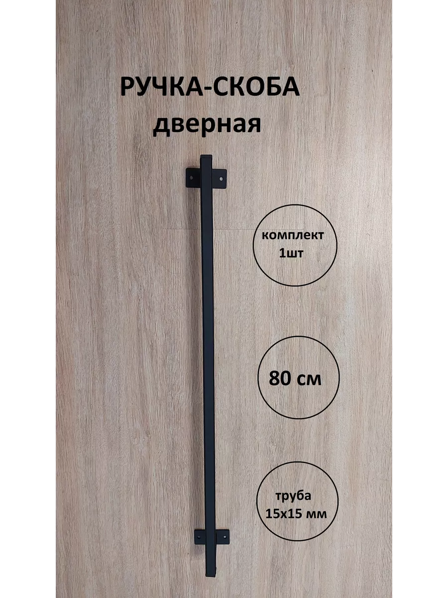 Ручка-скоба металлическая для уличной и внутренней установки на все типы дверей (металлических, деревянных, пластиковых, калиток) с одной или двух сторон. В комплекте одна дверная ручка длиной 80 см. Универсальные дверные ручки подходят для левого и правого открывания дверей. Отличается надежностью, простотой установки и эксплуатации, эстетичным видом. Комфорт и красота Вашего дома в деталях от нашего магазина. Ручка скоба для двери применяется для межкомнатных дверей, уличных дверей, калиток, гаражных ворот, для входной двери. Ручка для двери скоба выполнена в стиле Лофт из трубы 15х15 мм, порошковое покрытие. В комплекте с дверной ручкой скобой есть крепеж - 4 самореза 4.2х19.