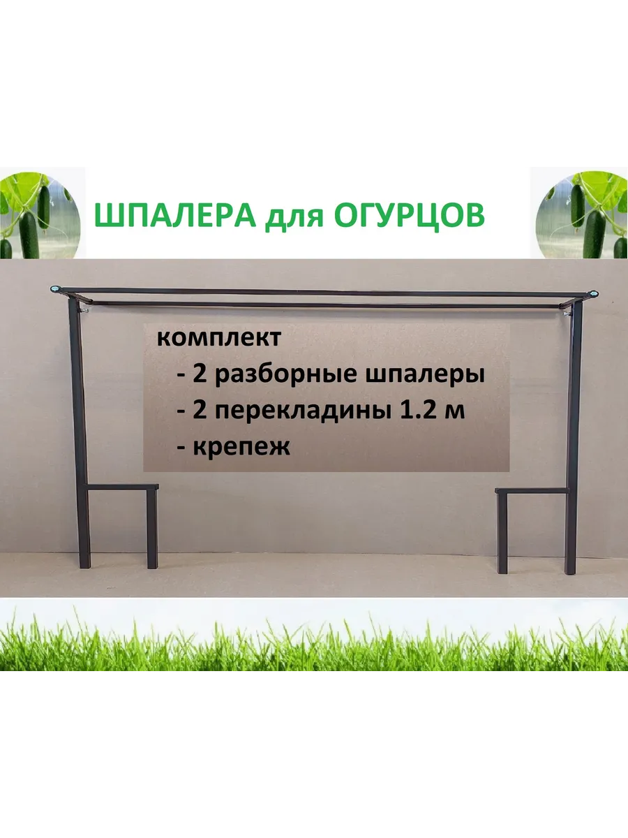 Комплектация: 2 разборные шпалеры выполнены из профильной трубы. Нижняя часть - 20х20 мм, верхняя - 15х15мм, толщиной 1.5 мм. Верхняя часть шпалеры вставляется в нижнюю и фиксируется болтом М8х16. К нижней часть приварена дополнительная ножка. Благодаря этому шпалера устойчиво стоит и не наклоняется. Заглубление в землю 30 см. На верхней части шпалеры из трубы 15х15 мм приварена перекладина 19 см, к которой по бокам крепятся 2 распорные планки по 1.2 м, дополнительно обеспечивающий жесткость конструкции. Крепление болтами М8х16. Для увеличения длины есть дополнительная стойка артикул 339583387. В комплекте 1 разборная шпалера и 2 распорные планки по 1.2 м.