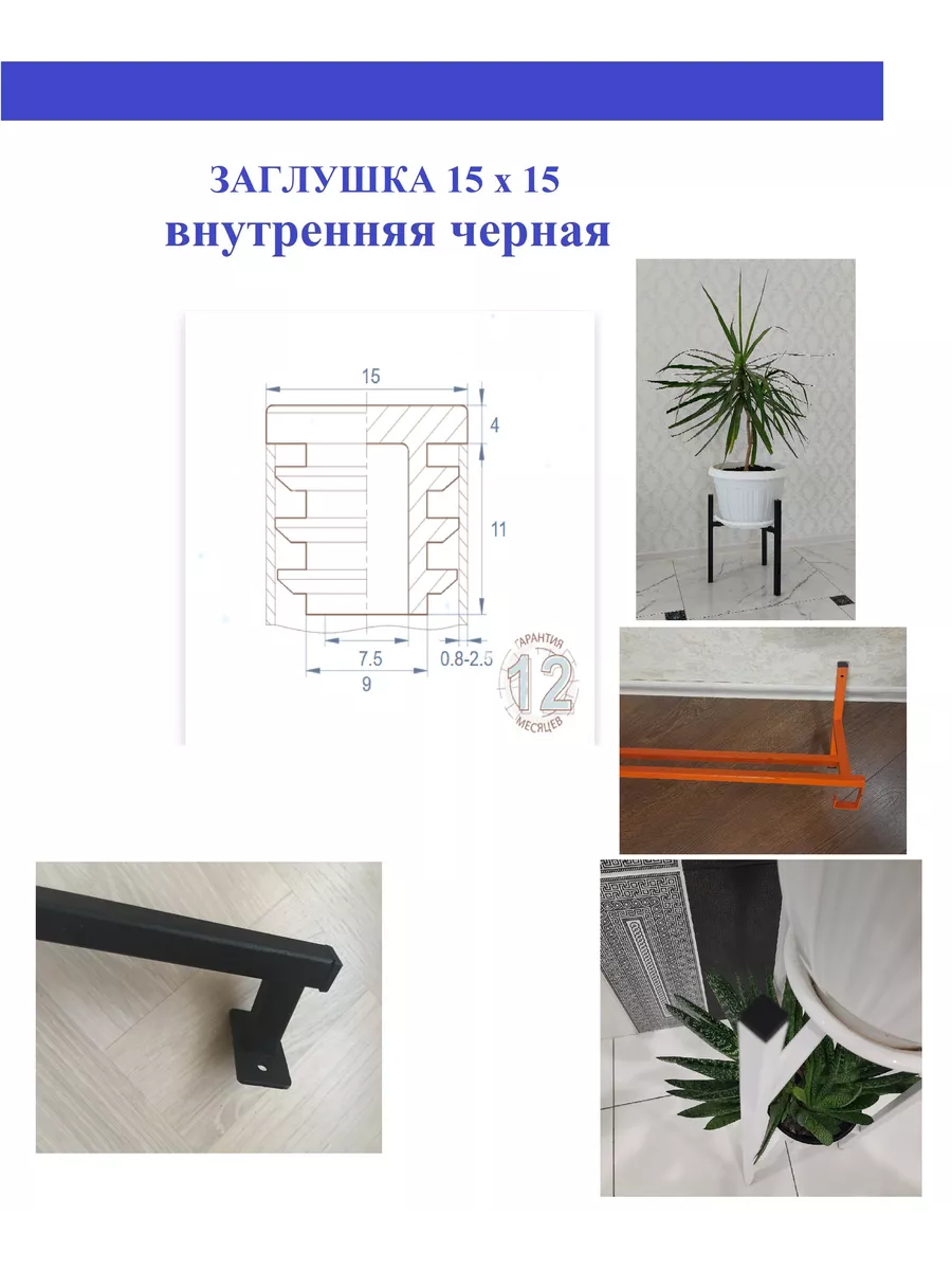 Внутренняя пластиковая заглушка с ребрами жесткости предназначена для надежной фиксации в трубе с квадратным сечением, внешние габариты которой составляют 15x15 мм и толщиной стенки трубы 1.0-2.0 мм. Изделие высокого качества c плоской, эстетичной шляпкой, поверхность имеет текстуру типа "шагрень".Заглушка широко используется как декоративный элемент.Изготавливается из ПВД. В комплекте 10шт. Внутренние заглушки монтируются во внутрь трубы, снаружи аккуратно закрывая спил трубы. Ребра жесткости на внутренней части заглушки обеспечивают надежное крепление и удержание заглушки внутри трубы. Применяется для защиты труб от попадания внутрь влаги и пыли. Может использоваться как практичная заглушка, например в качестве опоры, заглушка для профиля теплиц и парников и как декоративная. Заглушка мебельная. Заглушка внутренняя черная 15х15 мм универсальная, 10 шт.